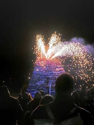 Carnaval nocturne de Sibret un village à côté de chez moi et feu d'artifice et grand feu